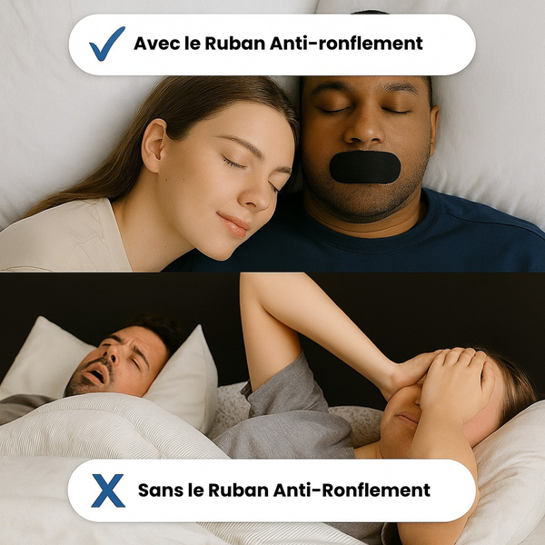 Le ruban anti-ronflement améliore votre sommeil en encourageant la respiration nasale, réduisant le ronflement et augmentant votre vitalité chaque matin.