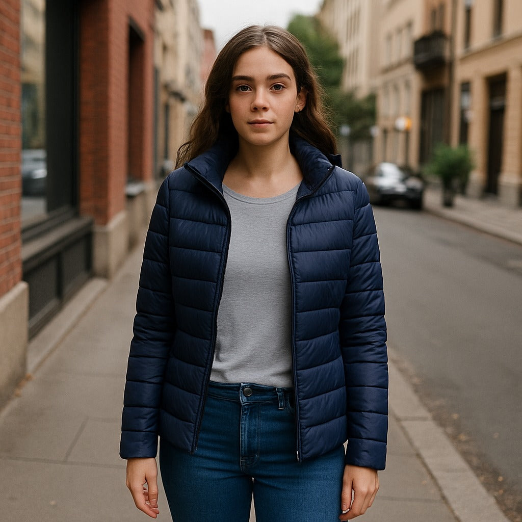 Le garnissage en polyester offre un excellent rapport chaleur/poids, idéal pour la mi-saison et l’hiver doux.